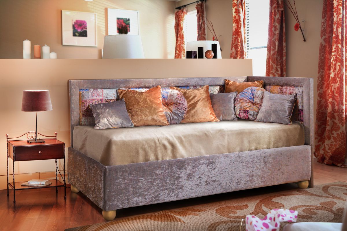 Кровать Бибионе – идеальное решение для спальни подростка или ребенка младшего возраста. Сочетание различных цветов и материалов создает противоположный эффект: утилитарный оттенок вместе с кожзамом или яркий тон вместе с оригинальным принтом. Кровать дополнена емким коробом, который станет удобным хранилищем для вещей. Дизайнерские мягкие подушки изящно дополняют убранство изделия. Внешне напоминая диванчик, Бибионе становится уютным местом для чтения книг или другого досуга. Срок изготовления кровати с мягким изголовьем на заказ – 15 рабочих дней. Срок гарантии на нее составляет 1,5 года.
