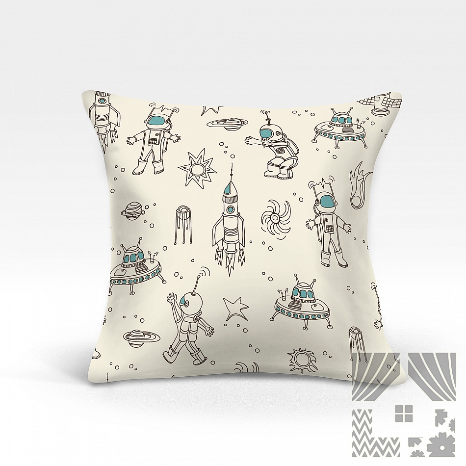 Подушка двухсторонняя оформлена современным рисунком (принт). С обратной стороны подушки рисунок-партнер. Наполнитель Холлофайбер" &mdash