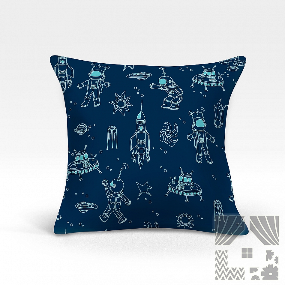 Подушка двухсторонняя оформлена современным рисунком (принт). С обратной стороны подушки рисунок-партнер. Наполнитель Холлофайбер" &mdash