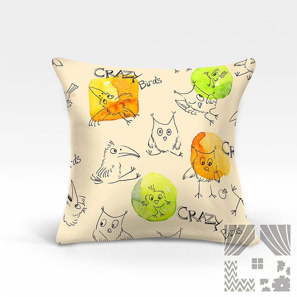 Подушка двухсторонняя оформлена современным рисунком (принт). С обратной стороны подушки рисунок-партнер. Наполнитель Холлофайбер" &mdash