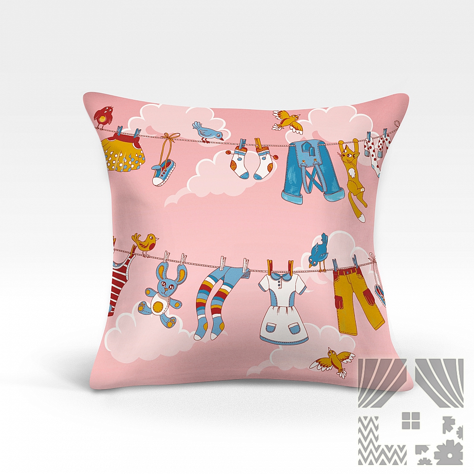 Подушка двухсторонняя оформлена современным рисунком (принт). С обратной стороны подушки рисунок-партнер. Наполнитель Холлофайбер" &mdash