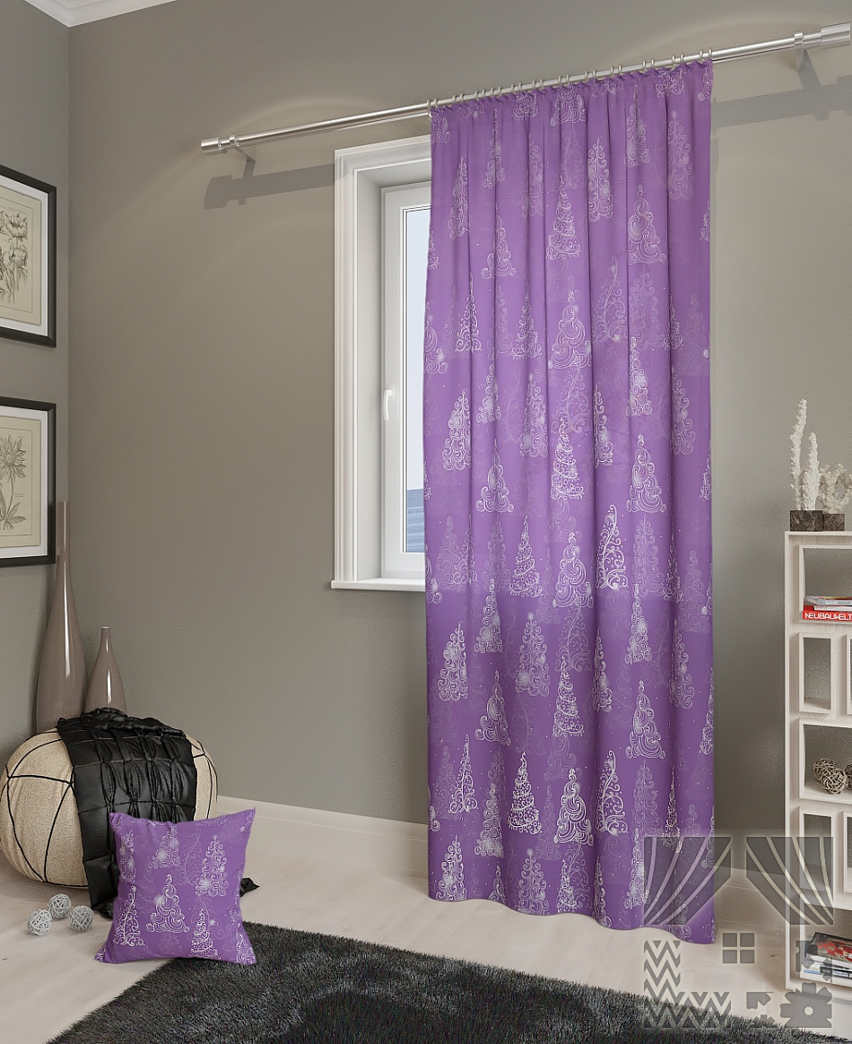 Шторы портьера Кана-П сиреневый 1 шт. Плотная основа портьер оформлена современным рисунком (принт). Размеры одного полотна: ширина: 148 см., высота: 260 см. Крепление: шторная лента (крючки).